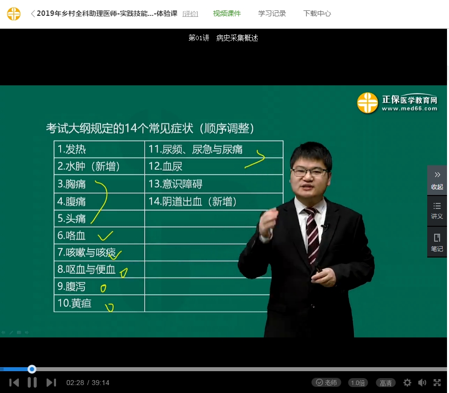 2019年鄉(xiāng)村全科助理醫(yī)師實(shí)踐技能考試復(fù)習(xí)迫在眉睫,為幫助大家順利備戰(zhàn)鄉(xiāng)村全科助理醫(yī)師實(shí)踐技能考試,醫(yī)學(xué)教育網(wǎng)編輯將整理的“2019鄉(xiāng)村全科助理醫(yī)師技能視頻輔導(dǎo):西醫(yī)基本技能-病史采集概述”具體內(nèi)容整理分享給大家,詳情如下: