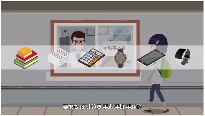 將非必要考試用品(書、計(jì)算器、手機(jī)、手表、手環(huán)等)存入物品寄放處