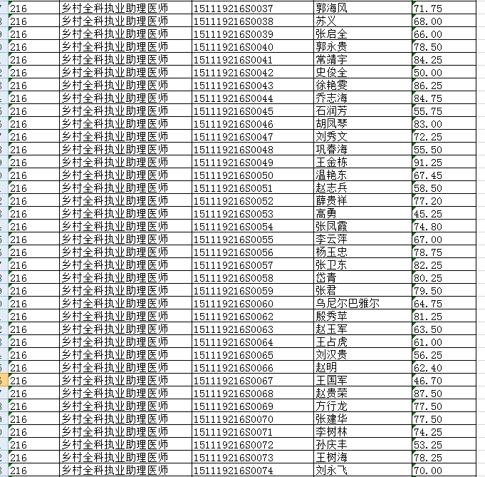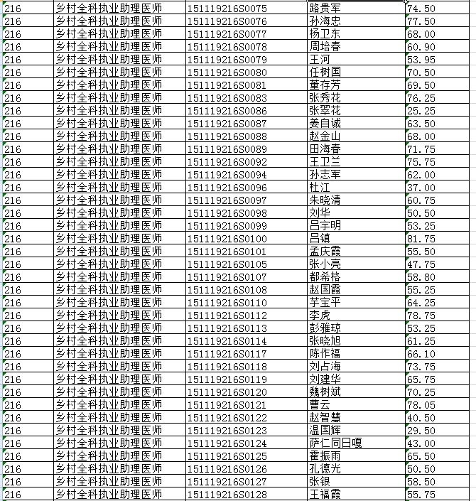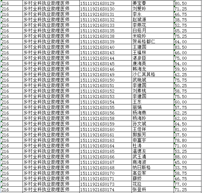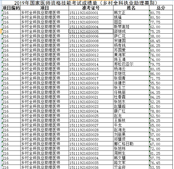 2019年國家鄉(xiāng)村執(zhí)業(yè)助理(錫盟考點)考生成績表(點擊下載)