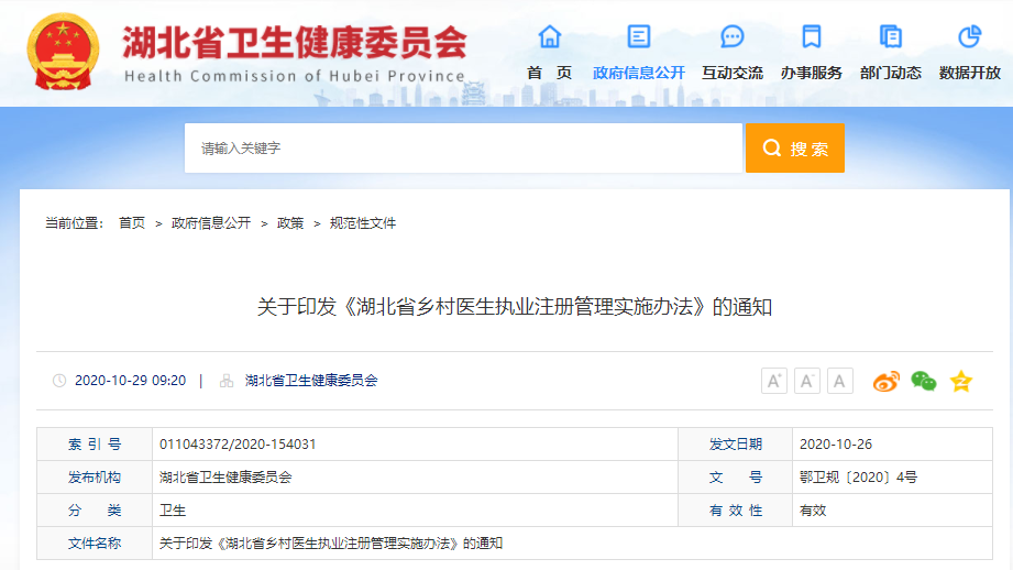 湖北率先發(fā)文《湖北省鄉(xiāng)村醫(yī)生執(zhí)業(yè)注冊(cè)管理實(shí)施方案》:允許鄉(xiāng)村醫(yī)生多點(diǎn)執(zhí)業(yè)!