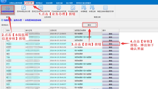 l 若發(fā)現(xiàn)有以上的問題,請到系統(tǒng)內(nèi)“醫(yī)師驗證”功能中查看,并辦理相關(guān)業(yè)務(wù)。