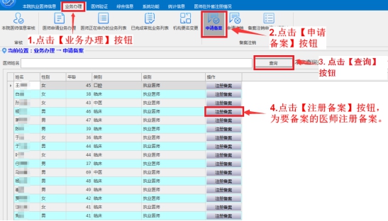 l 及時確認(rèn)醫(yī)師的業(yè)務(wù)申請,并打印相關(guān)申請表。如:注冊申請、變更申請、重新注冊申請及備案注銷申請表。