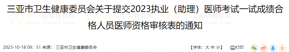 三亞市衛(wèi)生健康委員會(huì)關(guān)于提交2023執(zhí)業(yè)(助理)醫(yī)師考試一試成績(jī)合格人員醫(yī)師資格審核表的通知