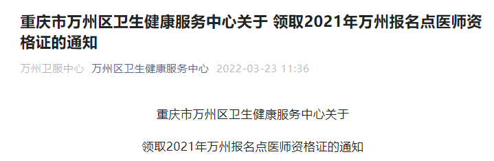 2021年重慶萬州考點(diǎn)鄉(xiāng)村全科助理醫(yī)師資格證書領(lǐng)取時(shí)間、地點(diǎn)