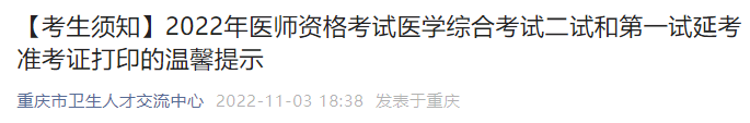 重慶市2022年鄉(xiāng)村全科助理醫(yī)師資格考試醫(yī)學(xué)綜合考試第一試延考準(zhǔn)考證打印的溫馨提示