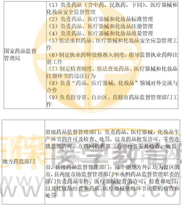 以上是醫(yī)學(xué)教育網(wǎng)小編為大家整理的“《法規(guī)》??键c:國家藥品監(jiān)督管理部門職責(zé)”的相關(guān)介紹,希望以上內(nèi)容對大家有幫助!