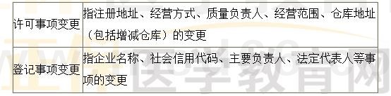 【解析】許可事項(xiàng)變更是指注冊(cè)地址、質(zhì)量負(fù)責(zé)人、經(jīng)營(yíng)方式、經(jīng)營(yíng)范圍、倉(cāng)庫(kù)地址(包括增減倉(cāng)庫(kù))的變更。