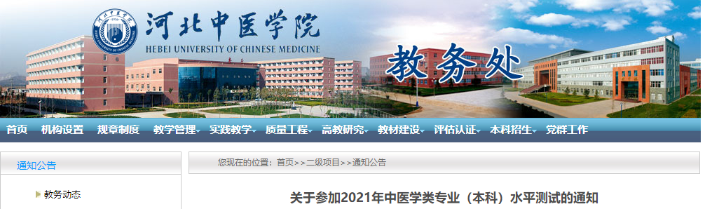 河北省中醫(yī)學院關于參加2021年中醫(yī)學類專業(yè)(本科)水平測試的通知發(fā)布,為方便大家了解,在此醫(yī)學教育網小編為大家整理如下內容: