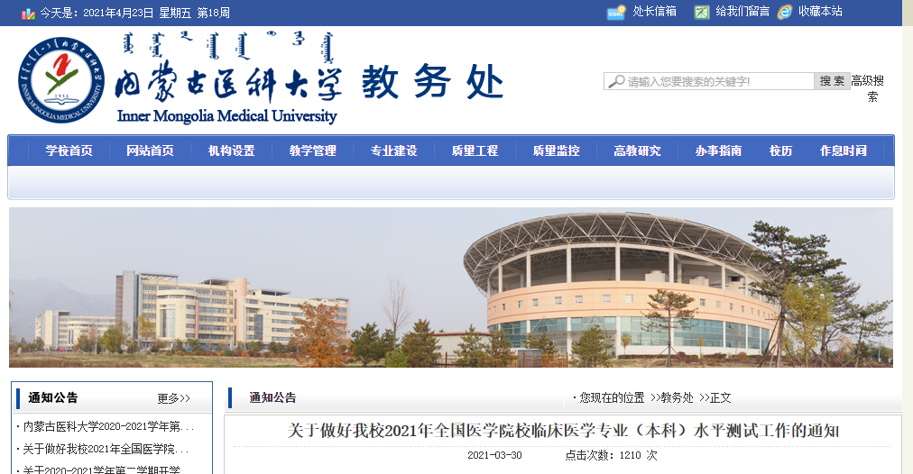 內(nèi)蒙古醫(yī)科大學(xué)發(fā)布關(guān)于2021年全國(guó)醫(yī)學(xué)院校臨床醫(yī)學(xué)專業(yè)(本科)水平測(cè)試工作通知發(fā)布,相信參加內(nèi)蒙古醫(yī)科大學(xué)2021年臨床醫(yī)學(xué)專業(yè)(本科)水平測(cè)試的考生都在關(guān)注,為方便大家了解,在此醫(yī)學(xué)教育網(wǎng)小編為大家整理如下內(nèi)容: