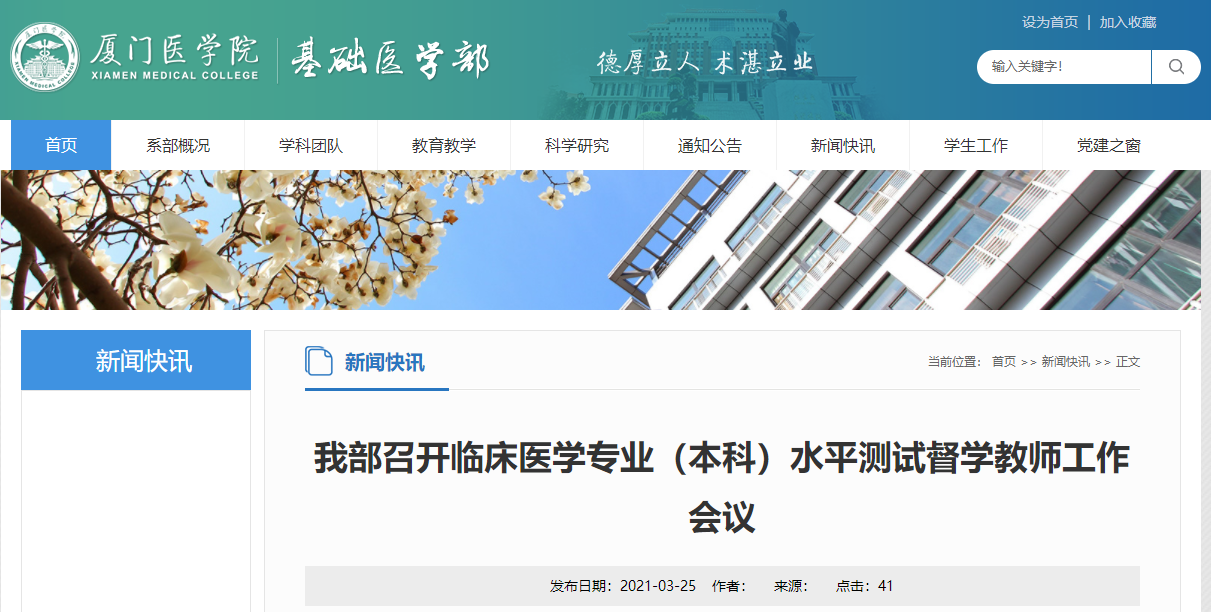 廈門醫(yī)學(xué)院基礎(chǔ)醫(yī)學(xué)部發(fā)布召開臨床醫(yī)學(xué)專業(yè)(本科)水平測試督學(xué)教師工作會議通知,為幫助參加廈門醫(yī)學(xué)院2021年全國臨床醫(yī)學(xué)(本科)專業(yè)水平測試的考生了解,在此醫(yī)學(xué)教育網(wǎng)小編為大家整理如下內(nèi)容: