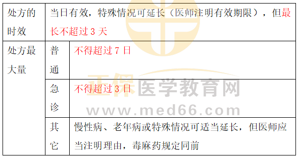 【答案解析】 處方一般不得超過(guò)7日用量;急診處方一般不得超過(guò)3日用量;對(duì)于某些慢性病、老年病或特殊情況,處方用量可適當(dāng)延長(zhǎng),但醫(yī)師應(yīng)當(dāng)注明理由。
