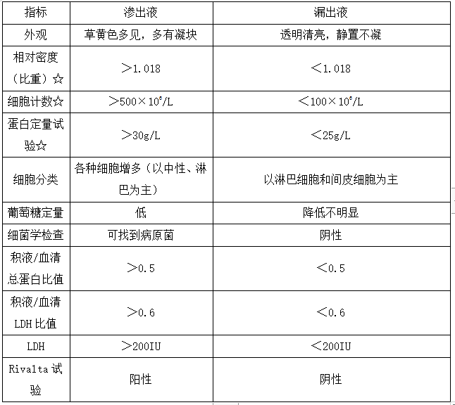 滲出液與漏出液各項(xiàng)檢測(cè)指標(biāo)的鑒別