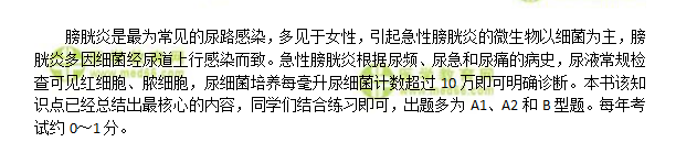 很多學(xué)校都實(shí)行了臨床執(zhí)業(yè)醫(yī)師分階段考試。醫(yī)學(xué)教育網(wǎng)整理了臨床執(zhí)業(yè)醫(yī)師第一階段理論知識(shí)大綱要求掌握的內(nèi)容:急性膀胱炎考點(diǎn)精講及復(fù)習(xí)進(jìn)階攻略(含隨手練習(xí)題)希望對(duì)各位考生有所幫助: