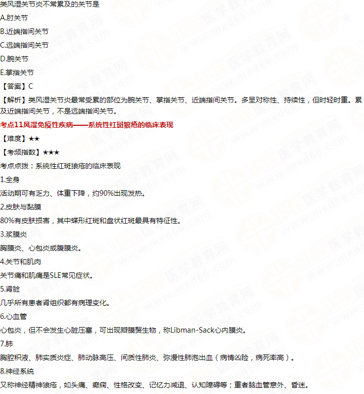 以上“臨床執(zhí)業(yè)醫(yī)師考試外科《風濕免疫系統(tǒng)》3大高頻考點(附題)”內(nèi)容醫(yī)學教育網(wǎng)整理,更多輔導精華資料、備考經(jīng)驗、免費視頻課程請查看正保醫(yī)學教育網(wǎng)醫(yī)師分階段欄目