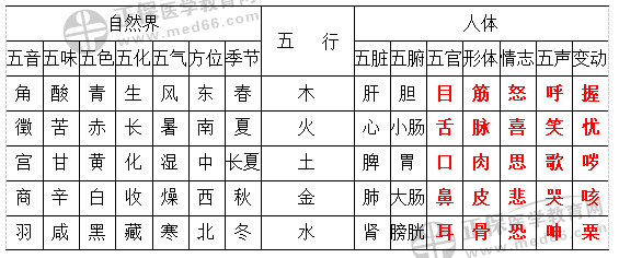 6.事物屬性的五行歸類表