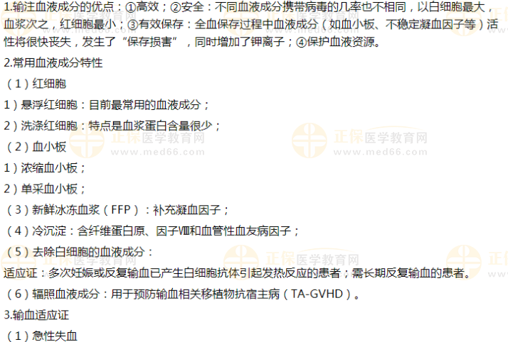 輸血是一重要的臨床治療措施,在今后考試中比例肯定會(huì)逐漸增加,所以考生還應(yīng)作為考試重點(diǎn)復(fù)習(xí),尤其是血液制品的選擇??荚囶}型多為A1和A2型題。
