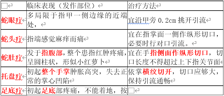 手足部疔瘡的臨床表現(xiàn)及治療(重點)