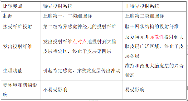 醫(yī)師(臨床)分階段必背考點(diǎn)之特異投射系統(tǒng)和非特異投射系統(tǒng)的比較