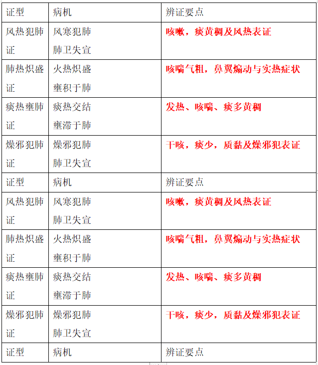 31.風寒犯肺、肺熱熾盛、痰熱壅肺、燥邪犯肺證的鑒別見下表