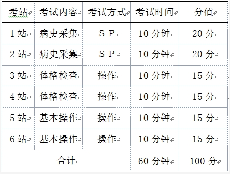主要考查病史采集、體格檢查和基本操作技能,同時對溝通交流能力與人文關懷進行評價。