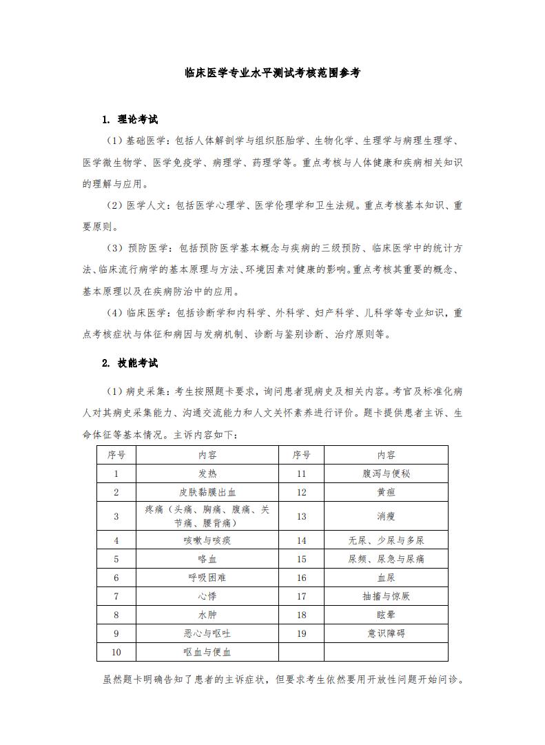 北大醫(yī)學(xué)部關(guān)于臨床醫(yī)師專業(yè)(本科)水平測試?yán)碚摽荚嚒⒓寄芸荚噧?nèi)容