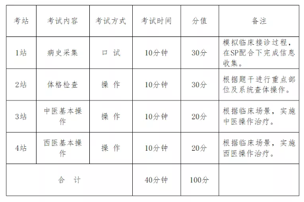 1.考試形式:客觀結(jié)構(gòu)化臨床考核(Objective Structured Clinical Examination,以下簡稱“OSCE”),包括問診、操作、標(biāo)準(zhǔn)化病人(Standardized Patients,以下簡稱“SP”)配合。