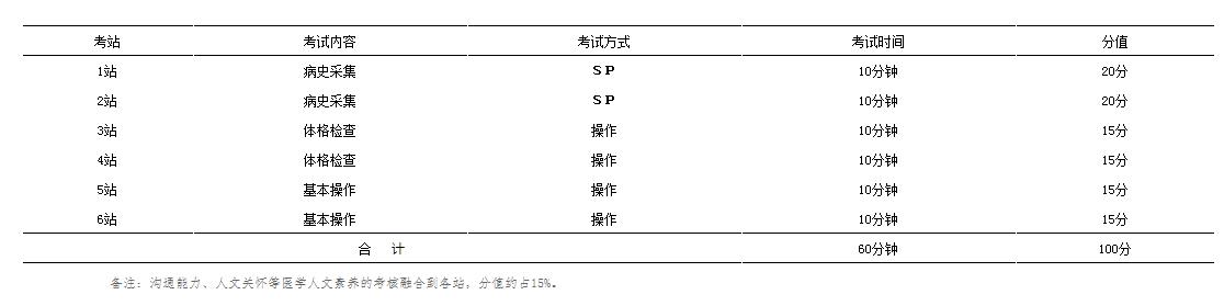 考試形式:面試。病史采集由標準化病人配合,體格檢查由標準體檢者配合或使用醫(yī)用模具,基本操作在醫(yī)學教學模擬人或醫(yī)用模具上進行。