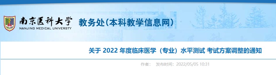 南京醫(yī)科大學(xué)關(guān)于2022年度臨床醫(yī)學(xué)(專業(yè))水平測試考試方案調(diào)整的通知,醫(yī)學(xué)教育網(wǎng)編輯為您整理以下相關(guān)信息,請考生及時(shí)查看: