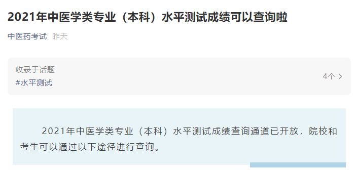 2021年中醫(yī)執(zhí)業(yè)醫(yī)師(本科)水平測(cè)試成績(jī)可以查詢啦,具體通知內(nèi)容醫(yī)學(xué)教育網(wǎng)小編搜集整理如下: