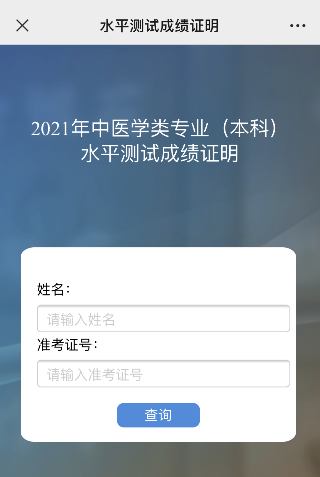 (三)進(jìn)入“2021年中醫(yī)學(xué)類(lèi)專(zhuān)業(yè)(本科)水平測(cè)試考生成績(jī)查詢?nèi)肟凇?/p>