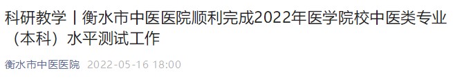 衡水市中醫(yī)醫(yī)院順利完成2022年醫(yī)學(xué)院校中醫(yī)類專業(yè)(本科)水平測(cè)試工作,醫(yī)學(xué)教育網(wǎng)編輯為您整理以下相關(guān)信息,請(qǐng)考生及時(shí)查看:
