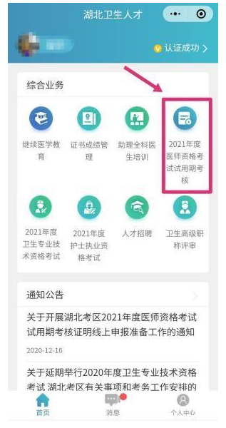 1.試用期考核證明上傳及修改,在國家醫(yī)學(xué)考生網(wǎng)報名成功但未在微信小程序填報試用期的考生,于2月8日之前,仍可以在“湖北衛(wèi)生人才”微信小程序中進(jìn)行試用期填報及修改,請試用單位配合完成審核階段信息修改等工作。詳情見關(guān)于湖北考取2021年度醫(yī)師資格考試試用期考核證明申報系統(tǒng)上線的通知。