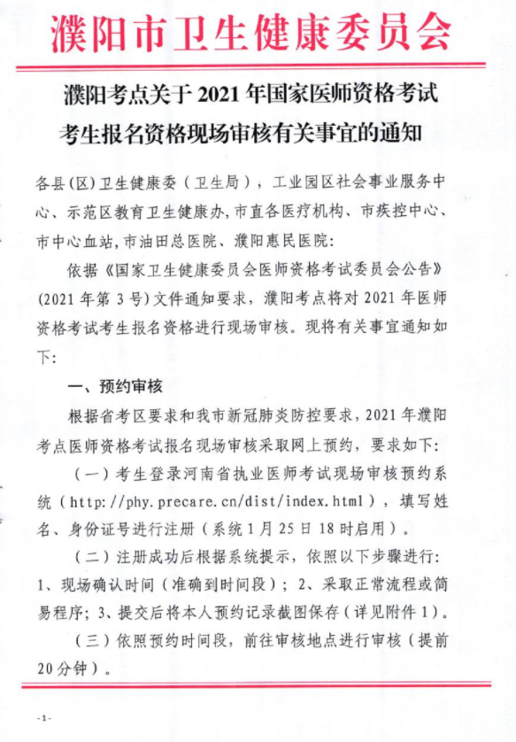 濮陽考點關于2021年國家醫(yī)師資格考試考生報名資格現(xiàn)場審核有關事宜通知