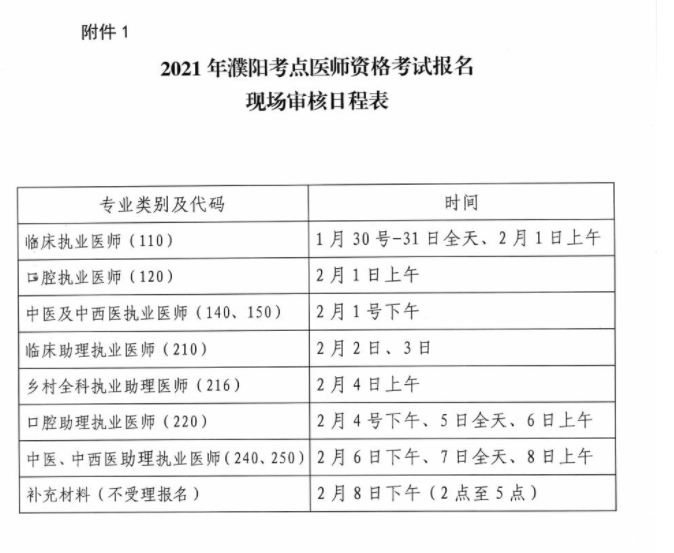 附件1 2021年濮陽考點醫(yī)師資格考試報名時間安排.docx