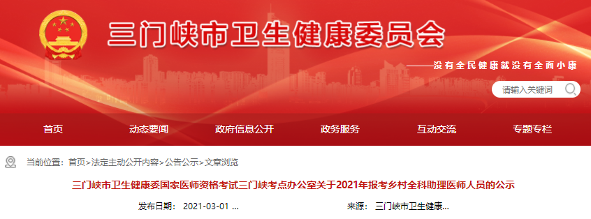 三門峽市醫(yī)師資格考試三門峽考點(diǎn)辦公室關(guān)于2021年報(bào)考鄉(xiāng)村全科助理醫(yī)師人員的公示