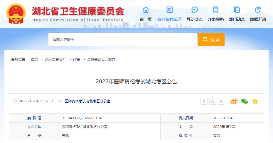 湖北省衛(wèi)健委發(fā)布2022年醫(yī)師資格考試湖北考區(qū)公告通知