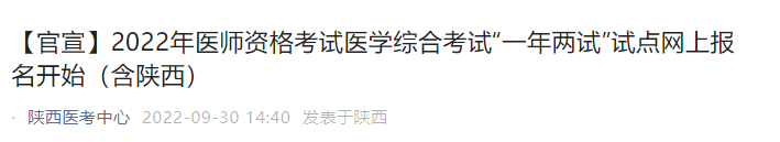 陜西省轉(zhuǎn)發(fā)2022年醫(yī)師資格考試醫(yī)學(xué)綜合考試“一年兩試”試點網(wǎng)上報名開始通知