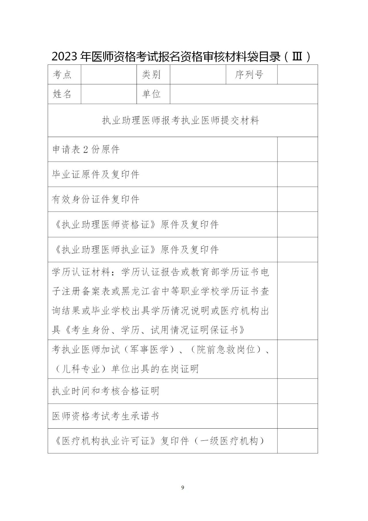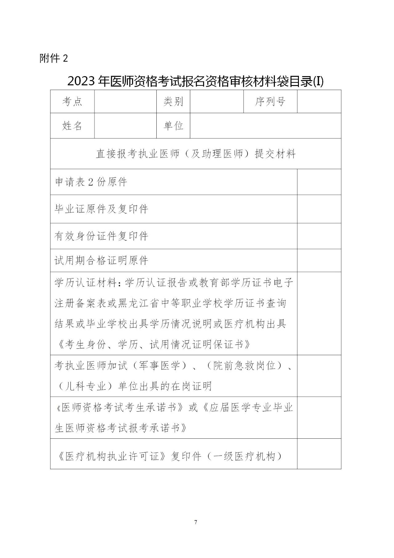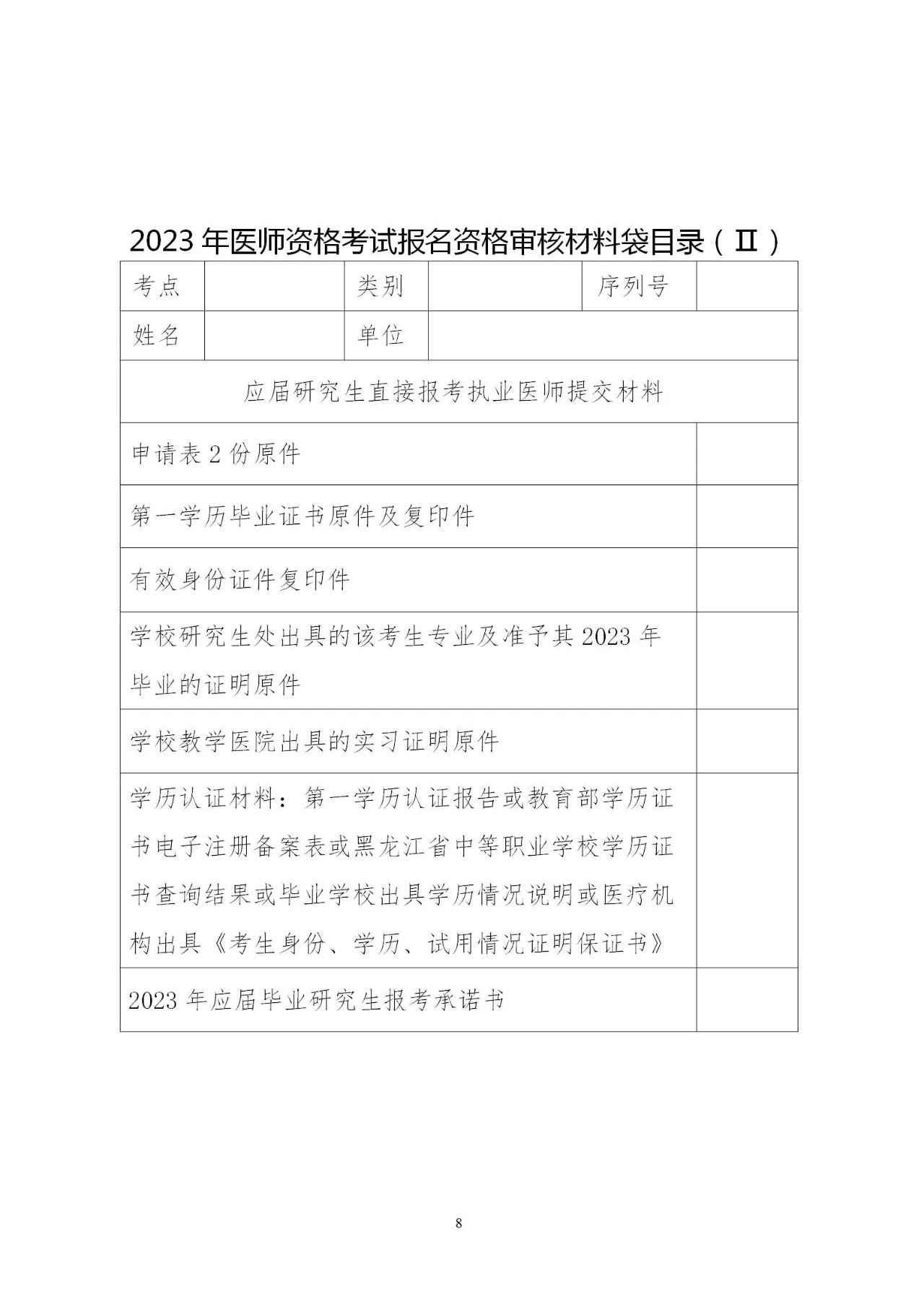 附件2.2023年醫(yī)師資格考試報(bào)名資格審核材料袋目錄