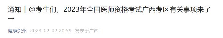 賀州考點(diǎn)轉(zhuǎn)發(fā)2023年廣西考區(qū)醫(yī)師考試報(bào)名/審核/考試時(shí)間安排通知