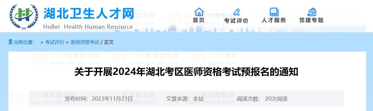 為做好湖北考區(qū)2024年醫(yī)師資格考試報(bào)名工作,從即日起開(kāi)展預(yù)報(bào)名工作,現(xiàn)將相關(guān)要求通知如下: