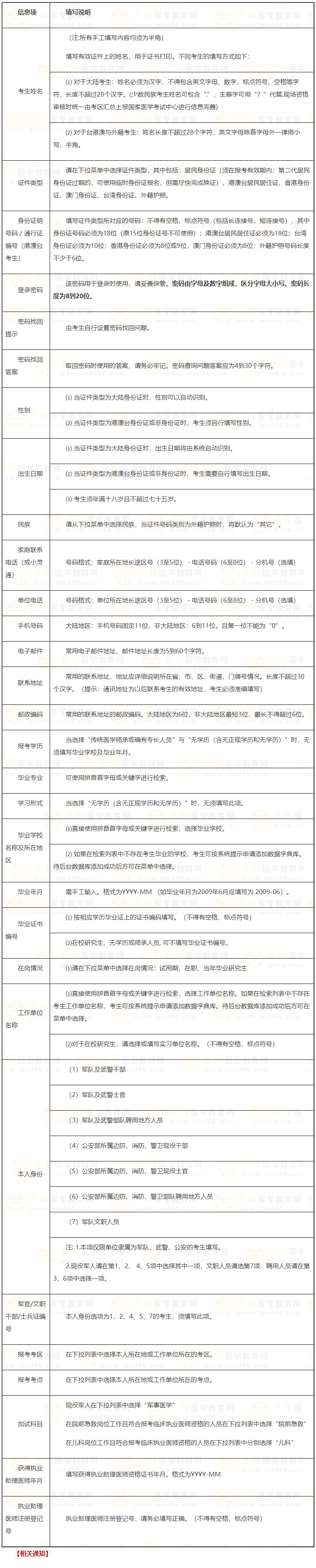 【報(bào)名指南】河南考區(qū)開(kāi)封考點(diǎn)2024年醫(yī)師資格考試報(bào)名表填寫(xiě)說(shuō)明對(duì)照