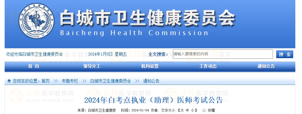 2024年吉林白城考點(diǎn)執(zhí)業(yè)(助理)醫(yī)師考試公告已發(fā)布,網(wǎng)上時間自2024年1月22日至2024年2月4日24時,現(xiàn)場審核時間為2024年2月26日至2024年3月3日。詳細(xì)通知公告如下: