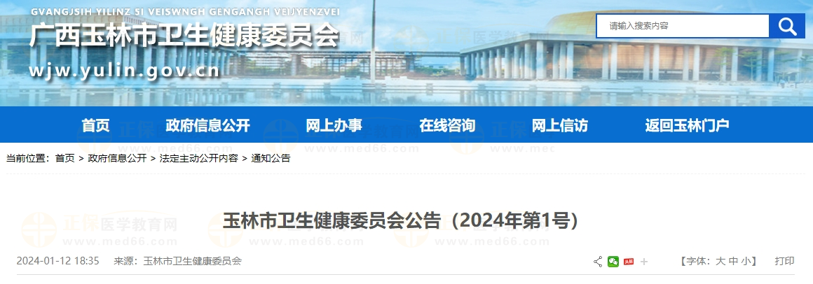 廣西考區(qū)玉林市衛(wèi)生健康委員會公告(2024年第1號)