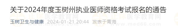 關(guān)于2024年度青??紖^(qū)玉樹州執(zhí)業(yè)醫(yī)師資格考試報(bào)名的通告