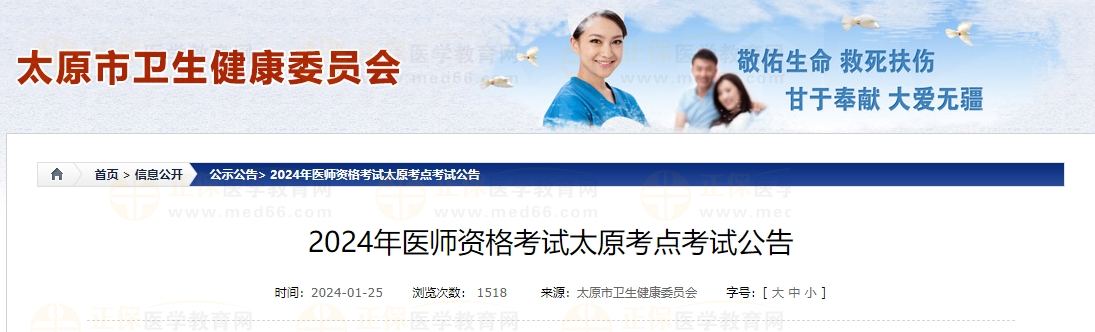 2024年醫(yī)師資格考試太原考點(diǎn)考試公告