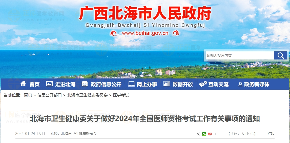 廣西考區(qū)北海市關(guān)于做好2024年全國醫(yī)師資格考試工作有關(guān)事項(xiàng)的通知
