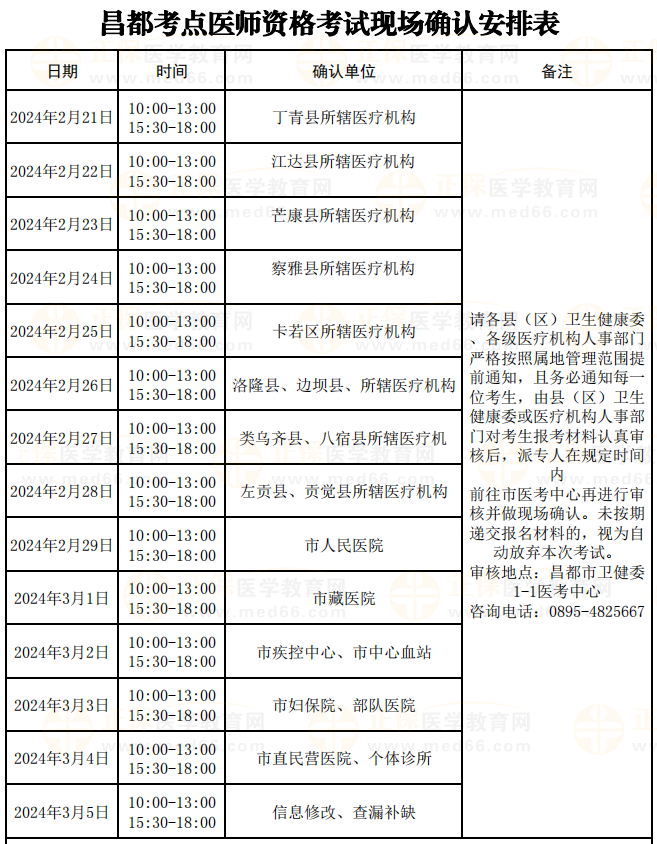 昌都考點醫(yī)師資格考試現(xiàn)場確認安排表