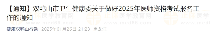 雙鴨山市衛(wèi)生健康委關(guān)于做好2025年醫(yī)師資格考試報(bào)名工作的通知