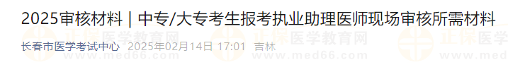 吉林長春考點中專/大??忌鷪罂紙?zhí)業(yè)助理醫(yī)師現(xiàn)場審核所需材料