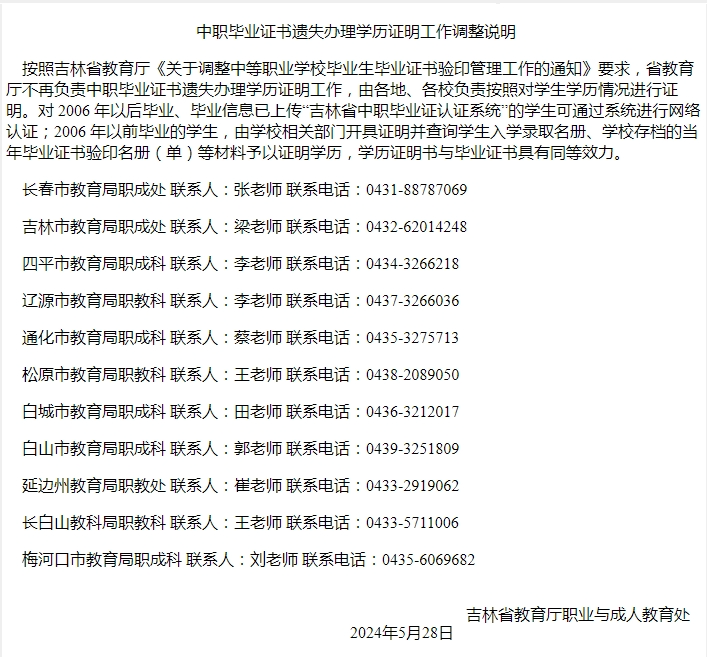 中職畢業(yè)證書遺失辦理學歷證明工作調(diào)整說明